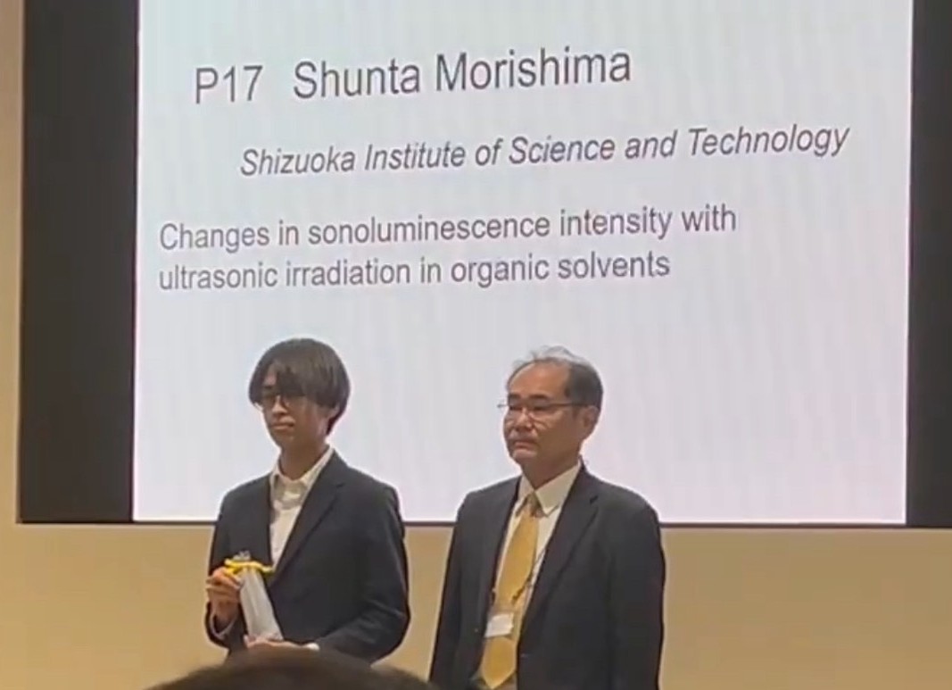 大学院 材料科学専攻|理工学研究科の2名が、Meeting of the Asia-Oceania Sonochemical Society (AOSS)でポスター賞を受賞しました