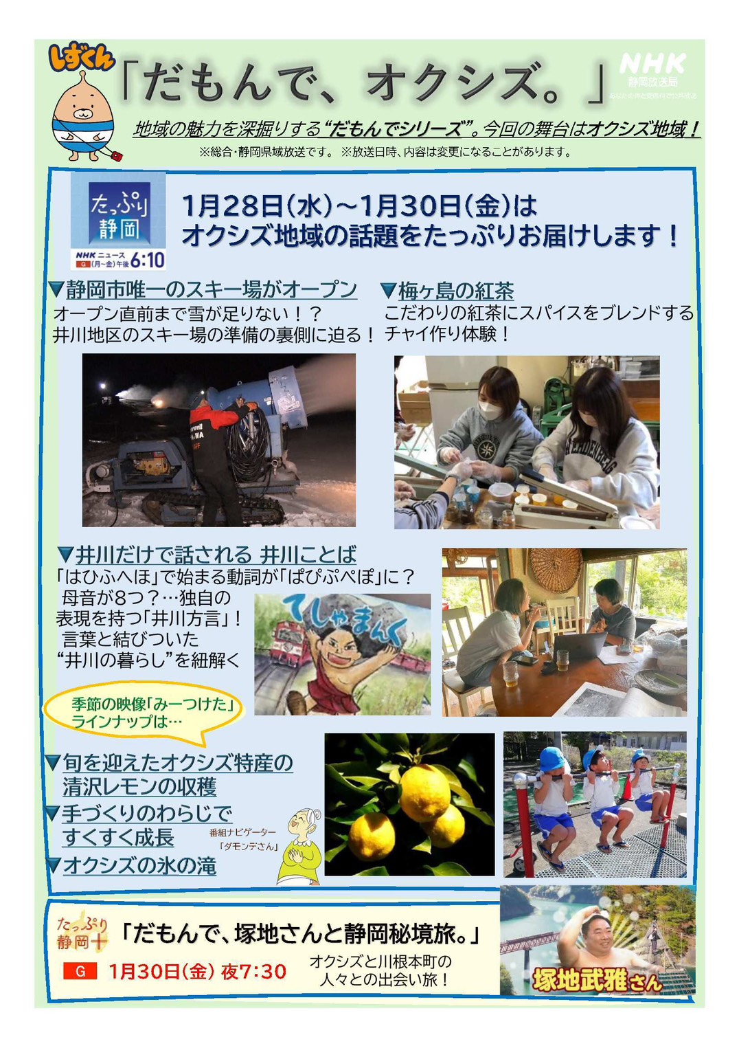 番組名:「たっぷり静岡」内コーナー『だもんで、オクシヅ。』