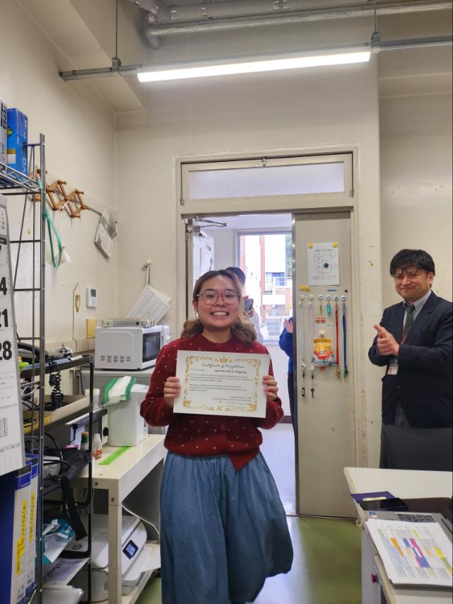 本プログラムは、2025年7月に締結したデラサール大学との学術交流協定に基づき実施しているもので、物質生命科学科・髙部研究室において3週間にわたり共同実験を行いました。参加学生は、研究活動を通じて専門知識を深めるとともに、本学学生との交流を通じて国際的な視野を広げました。