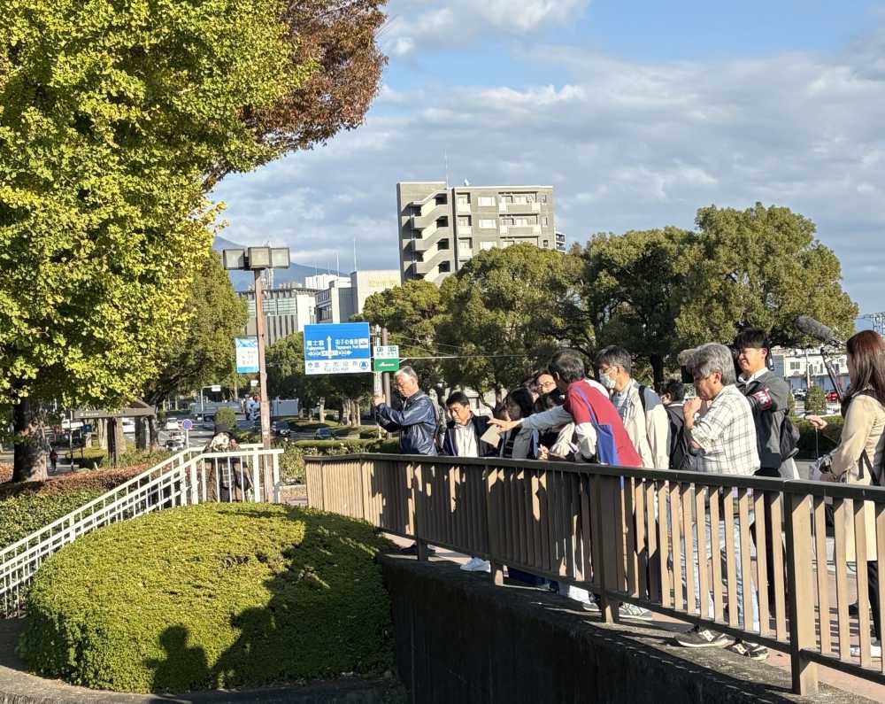 11/22,富士市市役所~潤井川のエリアを対象に,「まちあるきで学ぶ防災」を実施してきました.富士市内においては,昨年,静岡県富士土木事務所さんが主体となって開催された「富士川橋開通100周年記念事業 かりがねウォーク2024 ~橋と歴史とインフラを巡る~」に相乗りさせていただきましたが,今回は,当センターと 新日本設計株式会社の共催,富士市建設産業活性化協議会さんに後援いただき実施されました.好天にも恵まれ,中学生から70代の方まで,幅広い世代の方々にご参加いただきました.