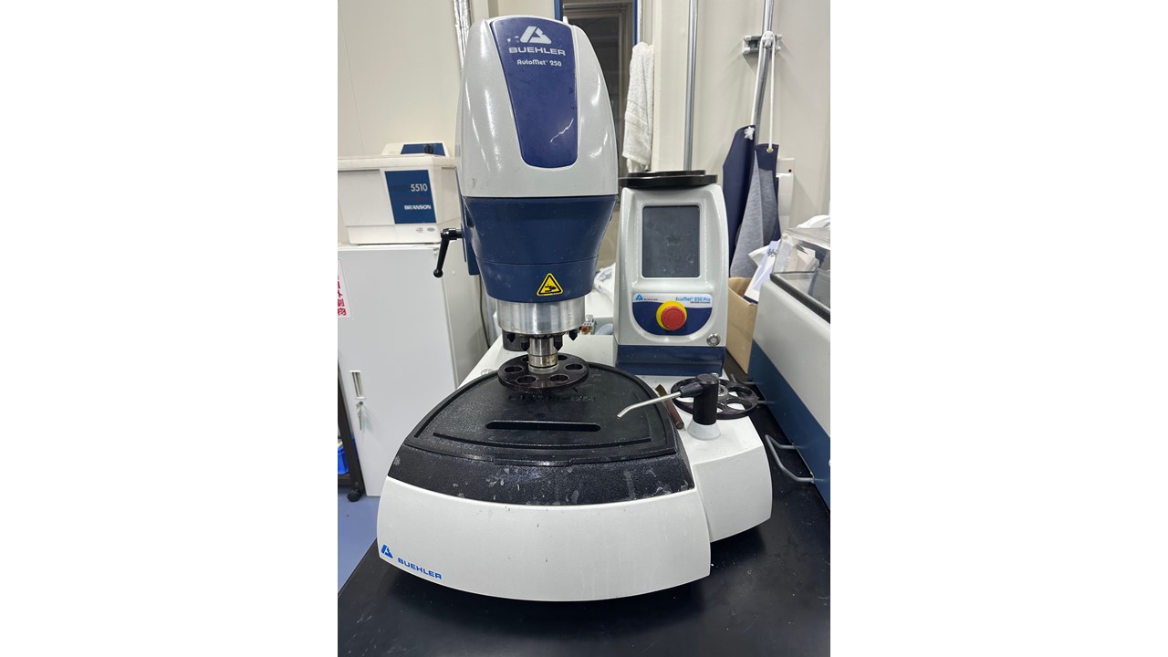 自動研磨装置 仕様 型名 AutoMet250/EcoMet250Pro (Buehler) 研磨盤モーター出力 ー出力 1 Hp [750 W] 研磨盤寸法 8 in×10 in [203 mm×254 mm] 研磨盤速度 10~50 rpm 保有研磨紙・布 カービメット(粒度600)、テックスメットP、ベルドテックス、マイクロクロス 保有研磨剤 ダイアモンド6, 1 μm(単結晶、多結晶)、 マスターメット・コロイダルシリカ、マスタープレップ・アルミナ
