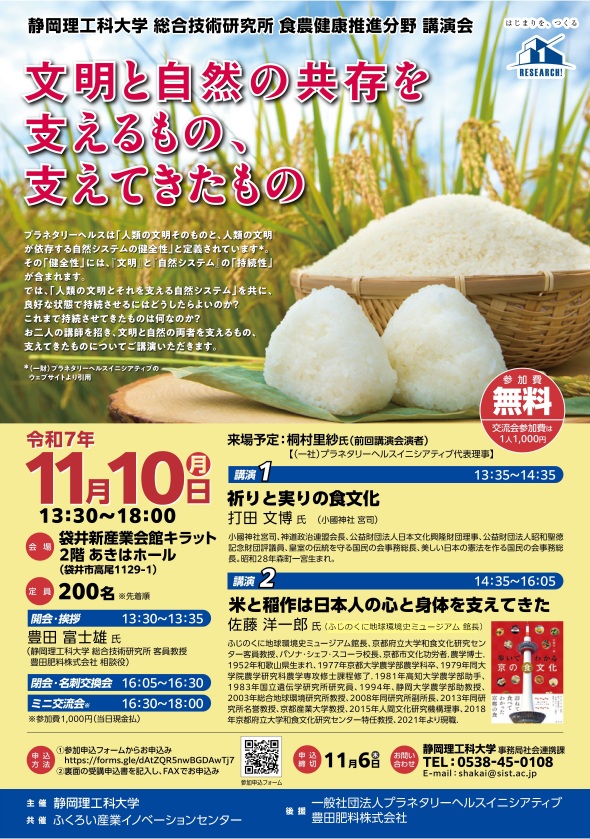 静岡理工科大学 総合技術研究所 食農健康推進分野 講演会
