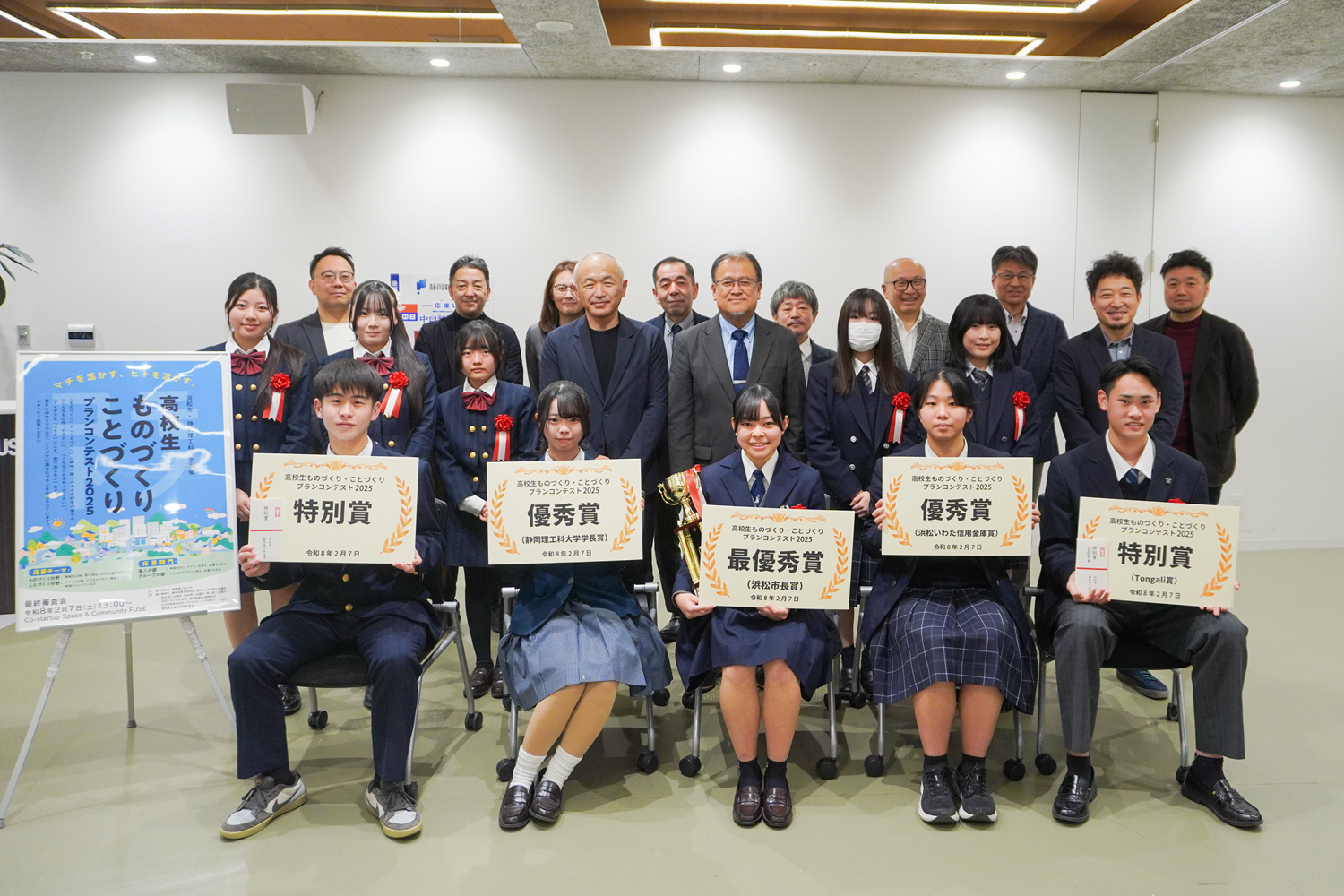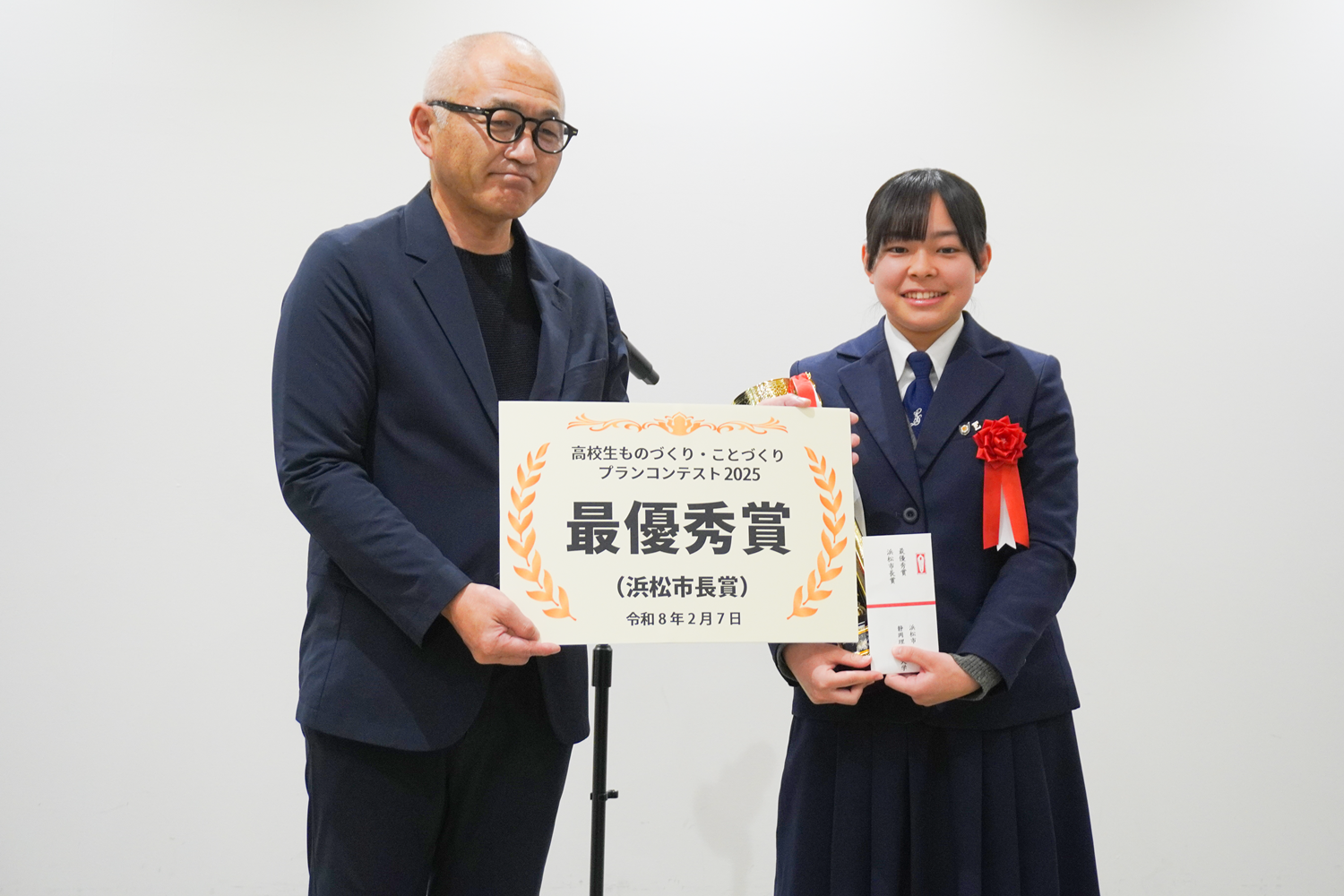 令和8年2月7日(土)、浜松市のFUSEにて、51校184件の応募書類のうち、書類選考を通過した5組によって最終審査会を開催しました。応募されたアイデアについてプレゼンテーションが行われ、審査の結果、最優秀賞・優秀賞・特別賞が決定しました。