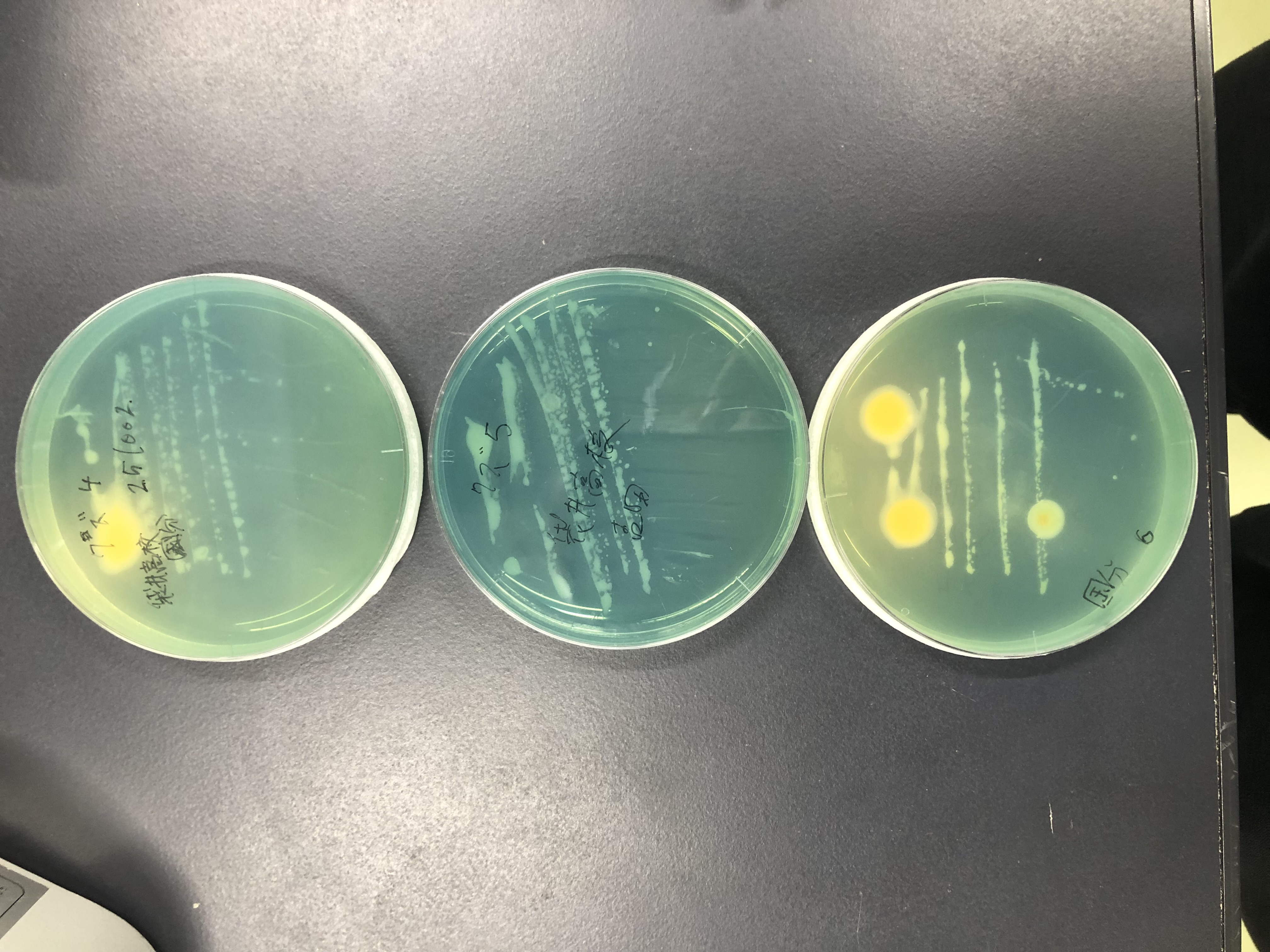 大学構内に自生するマメ科植物の根粒から分離された微生物の様子